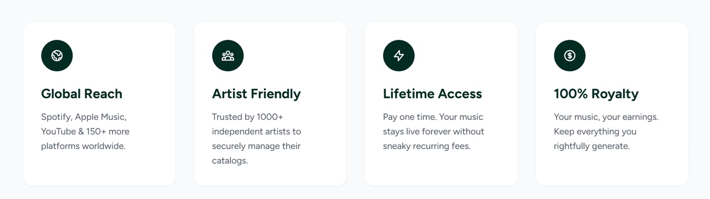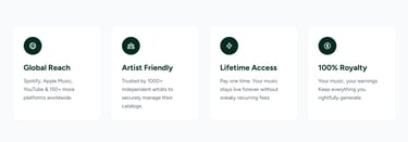 Pay one time. Your music stays live forever without sneaky recurring fees.